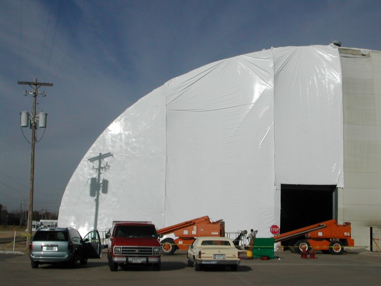 Large pieces of heavy equipment and machinery were wrapped for ground shipment in Windsor, CT. A large hoop structure was also wrapped to protect interior after wind damage to the outside.